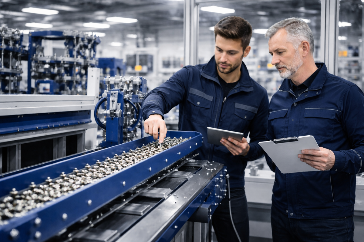 Das Fördergut selbst ist ein weiterer entscheidender Faktor. Gewicht, Form, Oberfläche, Empfindlichkeit und Fließverhalten wirken sich deutlich darauf aus, wie sich Produkte auf einem Vibrationsförderer verhalten. Kleine und leichte Komponenten reagieren oft anders als größere oder schwerere Teile. Auch rieselfähige Materialien verhalten sich anders als geometrisch definierte Werkstücke. Deshalb muss der Aufbau eines Vibrationsförderers immer in Verbindung mit dem realen Material betrachtet werden. In vielen Fällen ist genau diese materialbezogene Anpassung der Schlüssel zu einer wirtschaftlichen Lösung.